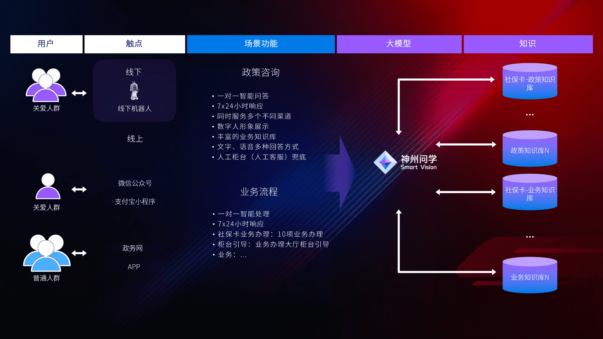 • 线上线下全覆盖:线上提供微信公众号、、、、支付宝小程序、、、政务网、、app多种渠道,,,与线下机器人形成完整服务体系。。。